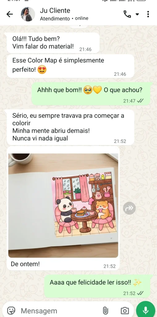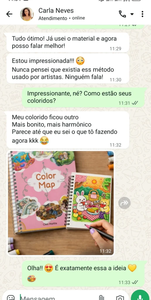Colorindo com amigos e meus sobrinhos, percebi que era possível ensinar técnicas de um jeito simples e gostoso, sem complicação — e ainda assim alcançar resultados surpreendentes. Foi aí que criei esse projeto “Método Color Map”: uma forma de compartilhar com você o que aprendi e o que acredito.