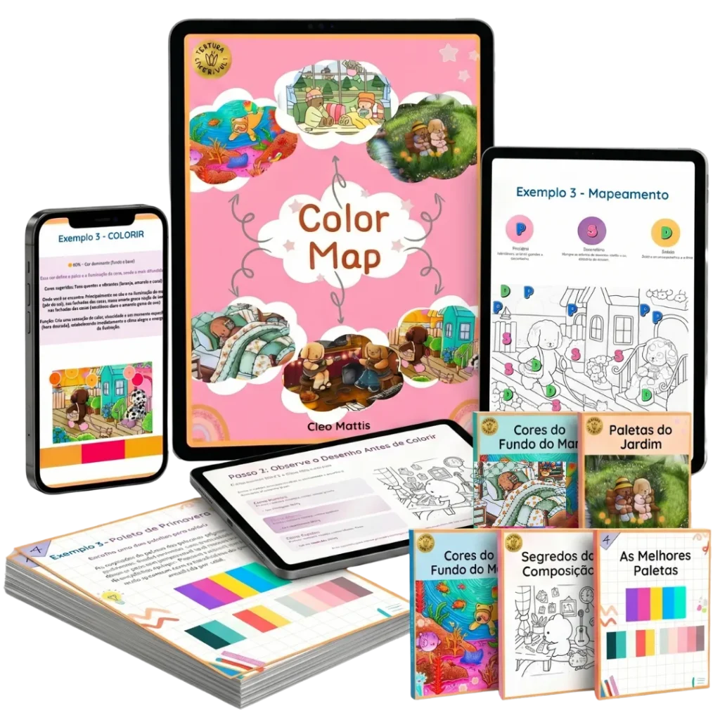 Você vai aprender a dominar o uso das cores em qualquer desenho e já enxergar a harmonia impecável, proporção e destaques antes mesmo de pegar na canetinha em um método desenvolvido em 4 passos, mesmo que você não entenda nada de desenho.